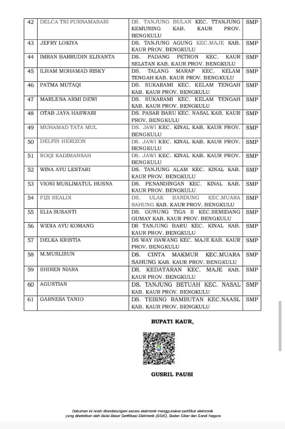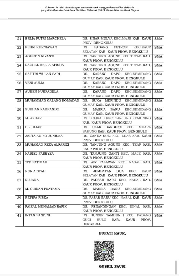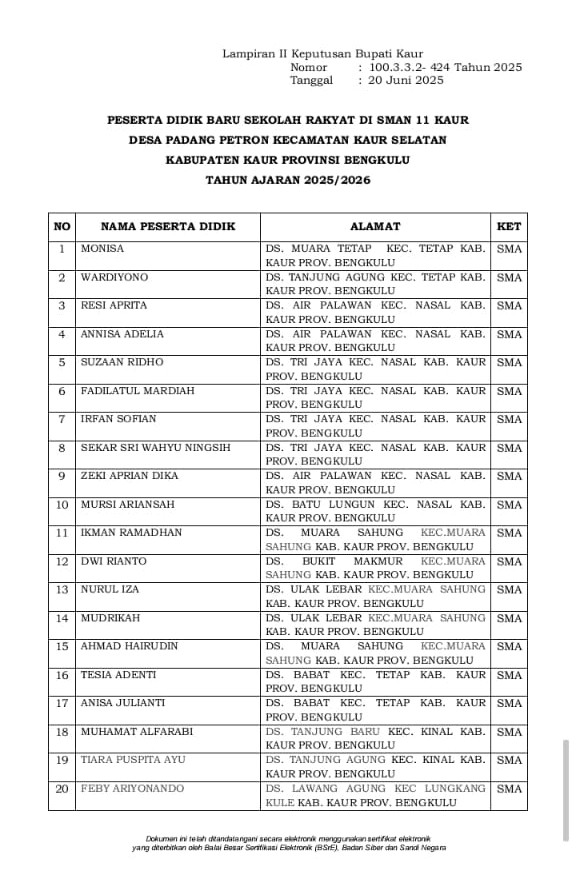 Pemda Kaur Umumkan Peserta Didik Baru Sekolah Rakyat Kabupaten Kaur