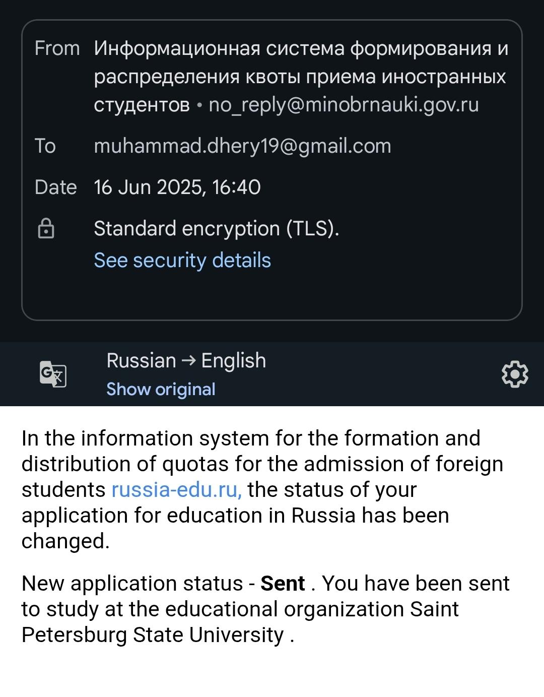 Setelah resmi lulus ujian sidang tesis S2 di Gubkin Russian State University of Oil and Gas pada hari ini, Dhery mendapatkan tawaran istimewa untuk melanjutkan studi ke jenjang doktor (Ph.D) di Universitas Saint Petersburg, tepatnya di kampus yang dikenal sebagai Kampus Almamater Presiden Rusia Vladimir Putin.