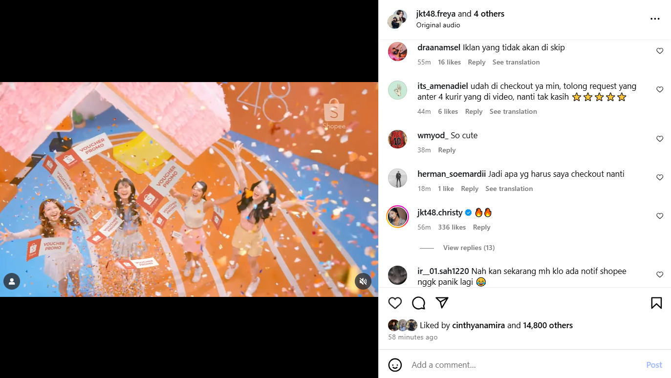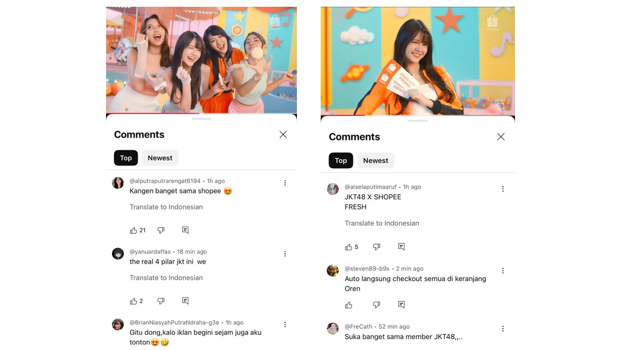 Tak sedikit pula yang mengungkapkan bahwa mereka sangat suka iklan terbaru Shopee dan JKT48 karena visual dan energinya yang menyenangkan.